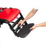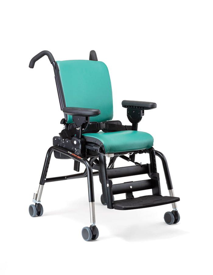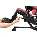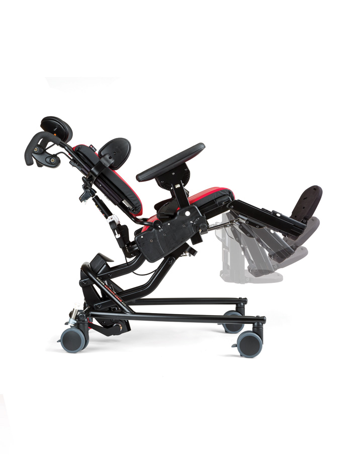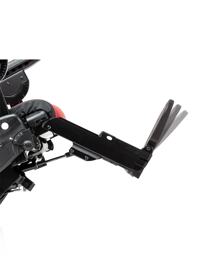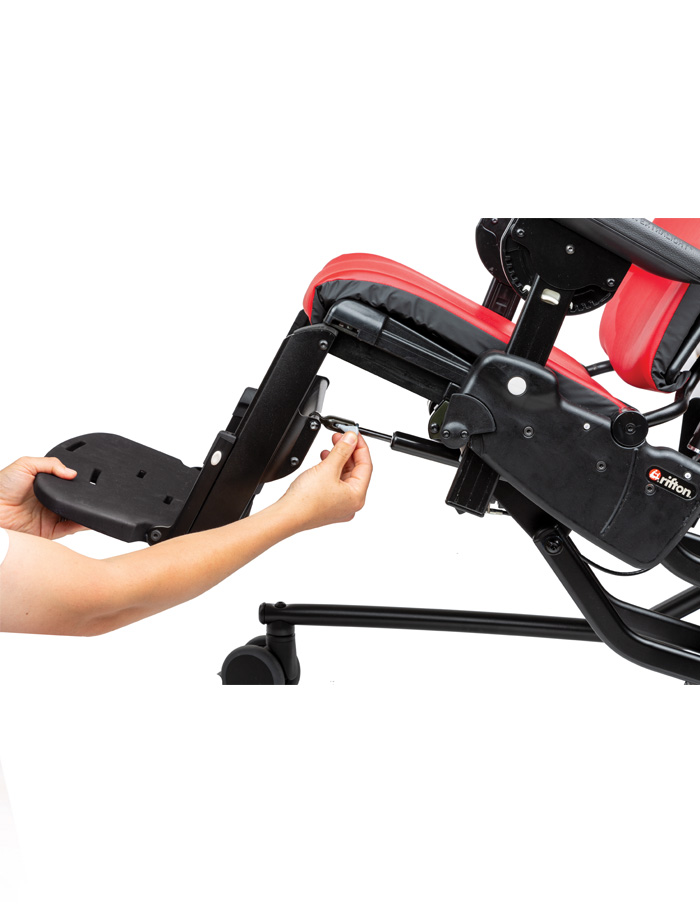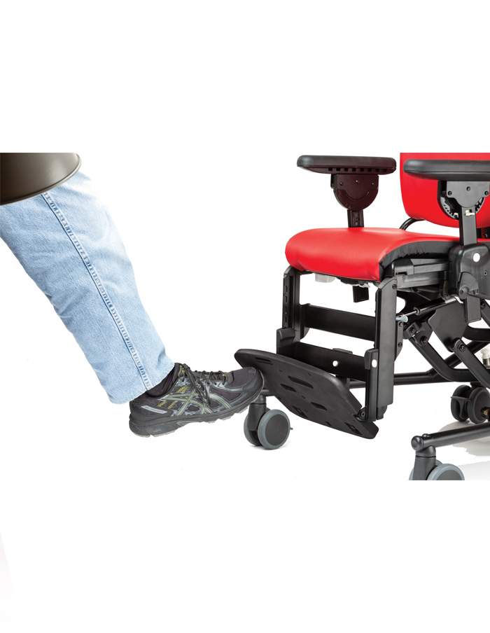 Per facilitar les transferències, el reposapeus es pot abatre o pot usar-se per realitzar un pas. L’altura pot regular-se de forma fàcil. També l’angle, tant del reposapeus (balancejant cap enrere sota de la cadira o estenent-se cap endavant fins a aproximadament 45º) com de la plataforma del reposapeus (s’ajusta en increments de 5° en un rang de 20°).