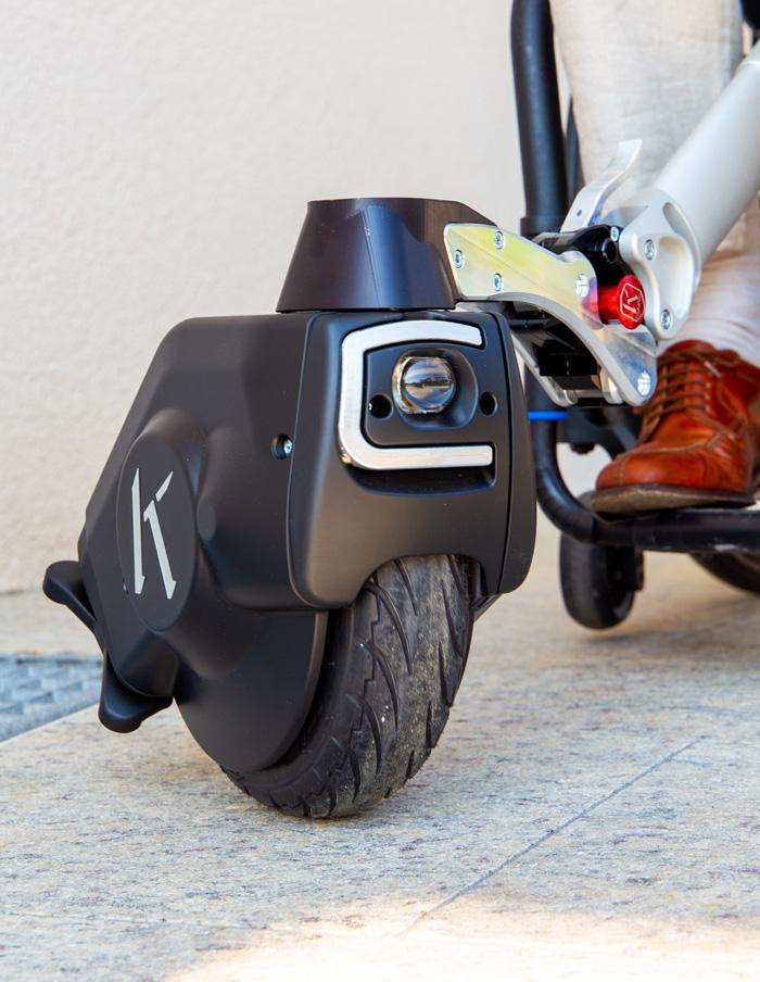 És molt lleuger i maniobrable: consisteix en una petita roda giratòria de 360° amb un motor elèctric i una bateria. Simple en aparença, però molt versàtil i útil: en funció de com el facis servir et permet transitar òptimament per tot tipus de terrenys (sots, herba, grava) i entorns (exteriors i interiors).