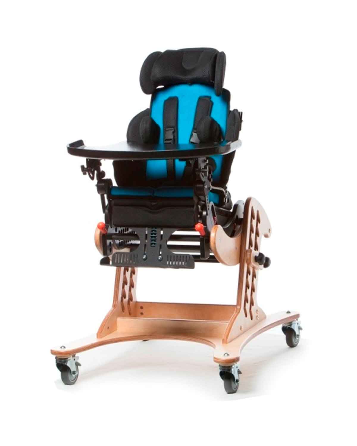 La base Launcher per a Shuttle Discovery és un xassis de fusta d’interior ajustable en altura que permet al cuidador canviar-la de forma ràpida i fàcil, s’acobla a la majoria de les taules gràcies a la seva gran capacitat d’ajust. Equipada amb rodes i fre perquè sigui fàcil de desplaçar el nen per tota la casa, guarderia o escola.