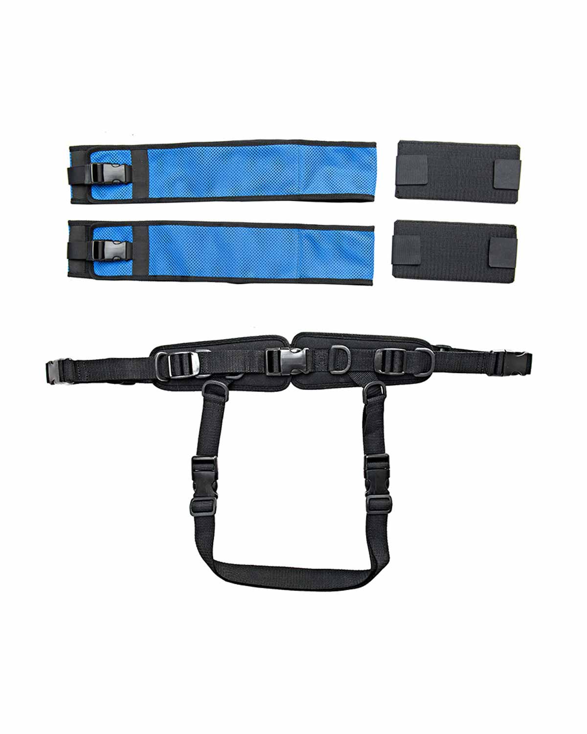 - Incorpora de sèrie: cinturó abdominal, control de cap ajustable i cingles d'estabilització de cames.