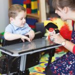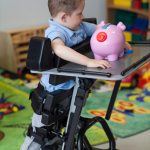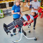 Aquest bipedestador ofereix un ajust d’angle suau i senzill, des de posició horitzontal fins a la bipedestació, facilitant les transferències i un ajust il·limitat d’angle precís requerit per a cada nen.