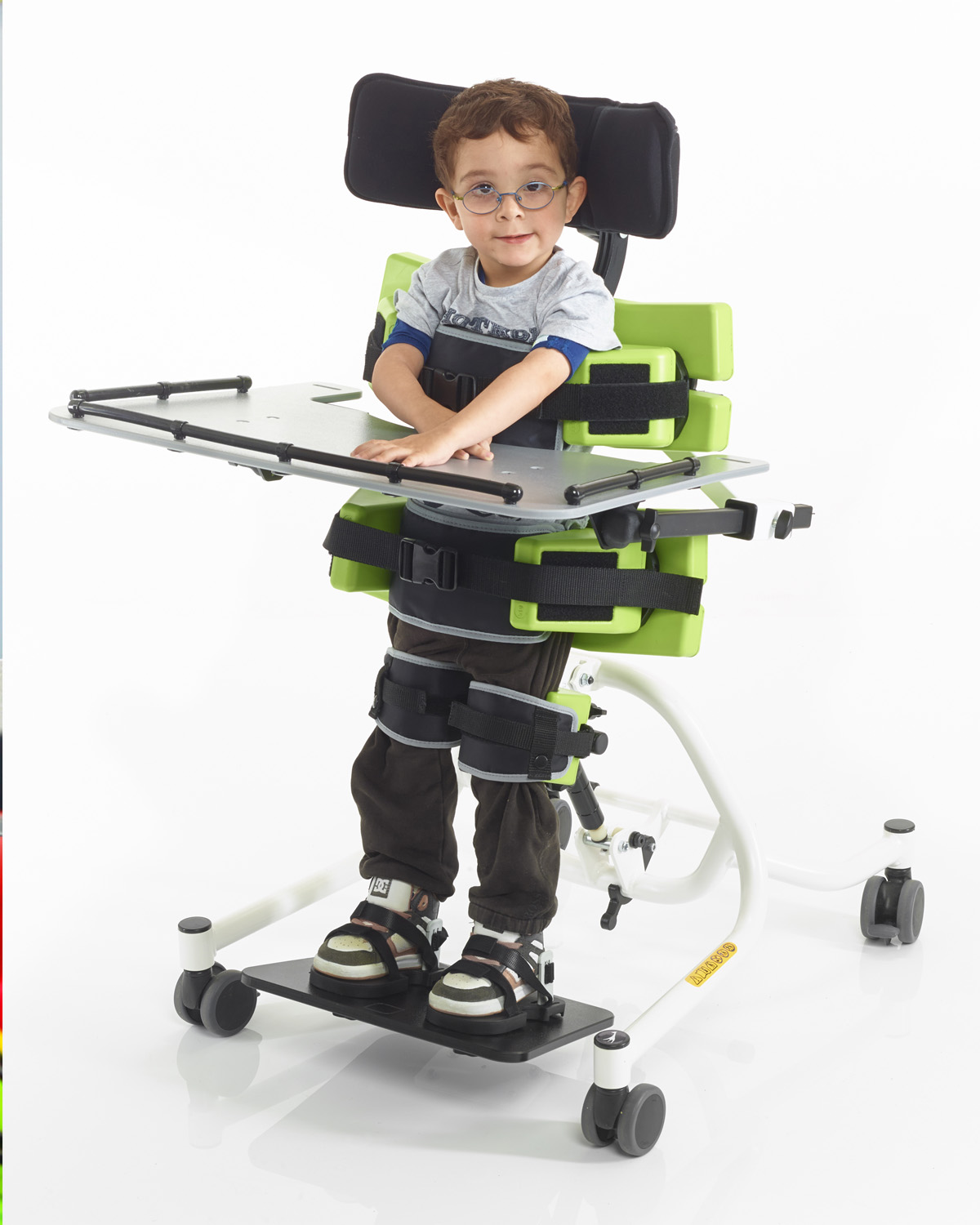Multistander és realment un producte modular, la qual cosa significa que es pot triar la configuració necessària en base a les necessitats de cada nen. El seu disseny obert, assegura la visió precisa del posicionament en tot moment. Les seves capacitats excel.lents per el suport toràcic i pèlvic, juntament amb el posicionament de cames, fan de Multistander una bona opció per quasi tots els nens.