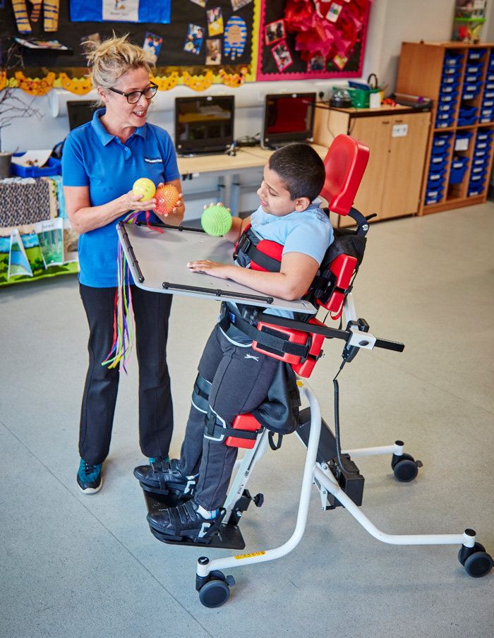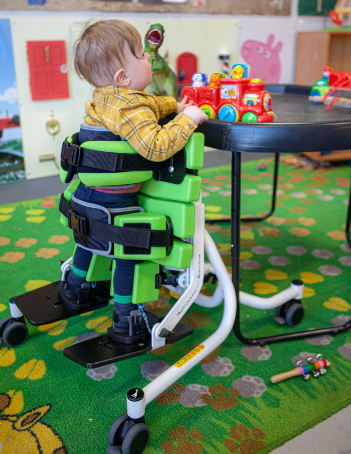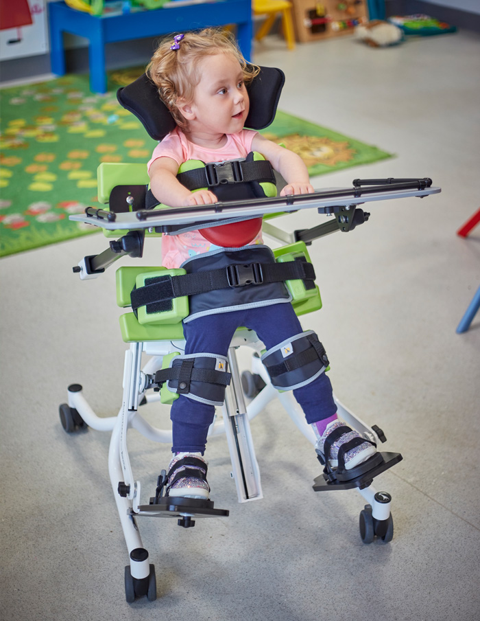 Multistander és realment un producte modular, la qual cosa significa que es pot triar la configuració necessària en base a les necessitats de cada nen. El seu disseny obert, assegura la visió precisa del posicionament en tot moment. Les seves capacitats excel.lents per el suport toràcic i pèlvic, juntament amb el posicionament de cames, fan de Multistander una bona opció per quasi tots els nens.