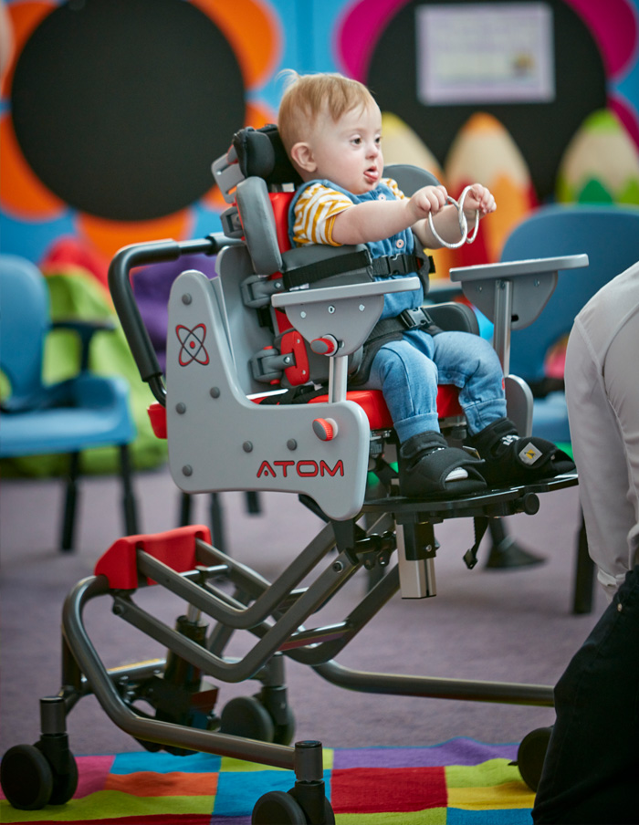 El disseny modern i centrat en el nen, combinat amb una àmplia gamma d’opcions de suport, fan que la cadira interior Atom ofereixi un posicionament òptim, ideal per desenvolupar una postura i funció correctes en sedestació. És indicada per a usuaris de 6 mesos a 5 anys.