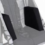 Els coixinets reductors de l’amplada del seient del cotxet esportiu Kukini estan fabricats en escuma elàstica ribetejada amb material suau. Estan unides a la tapisseria del seient pels dos costats.