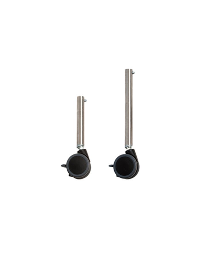 El conjunt de potes llargues amb rodes són ajustable en altura en 3 cm, les rodes permeten moure la cadira fàcilment d’una aula a una altre, venen equipades amb fre per evitar que es mogui quan no es tranporta.