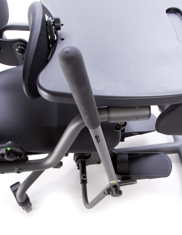 La palanca dʻelevació ajustable i extraïble per a Evolv i Glider permet ajustar lʻangle de lʻactuador hidràulic. Aquest ajustament proporciona més palanca a usuaris més petits o amb poca destresa o força, i pot permetre canvis de posició independents. Aquesta palanca també es pot treure per passar per portes estretes o en una aula, evitant canvis de posició involuntaris. No disponible amb Elevació elèctrica. Requereix actuador hidràulic.