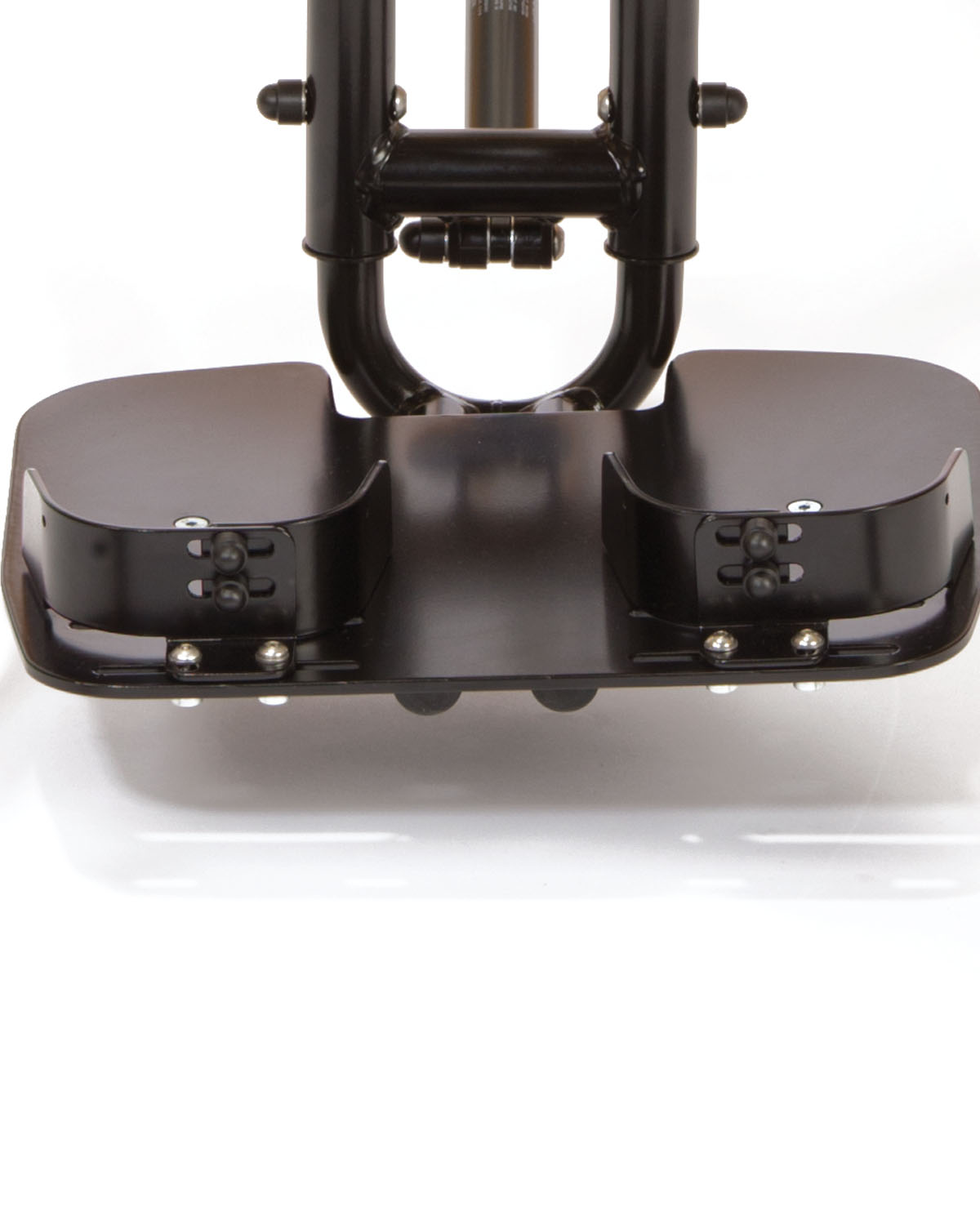 El soporte de talón para reposapiés es ajustable en ángulo y anchura. Disponible en 3 tallas.