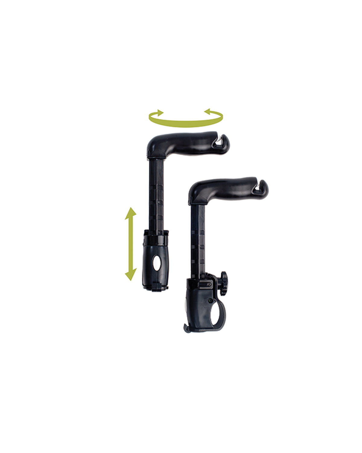 Un par de empuñaduras vienen de serie en cada posicionador de cadera o soporte pélvico.