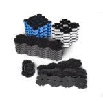 - El kit incluye la base de fijación, teselas de tres densidades distintas y tiras de sujeción de Velcro